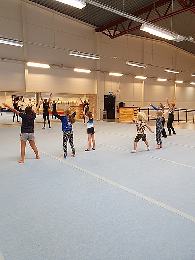 AG-gymnasterna på landslagsträning i Eskilstuna